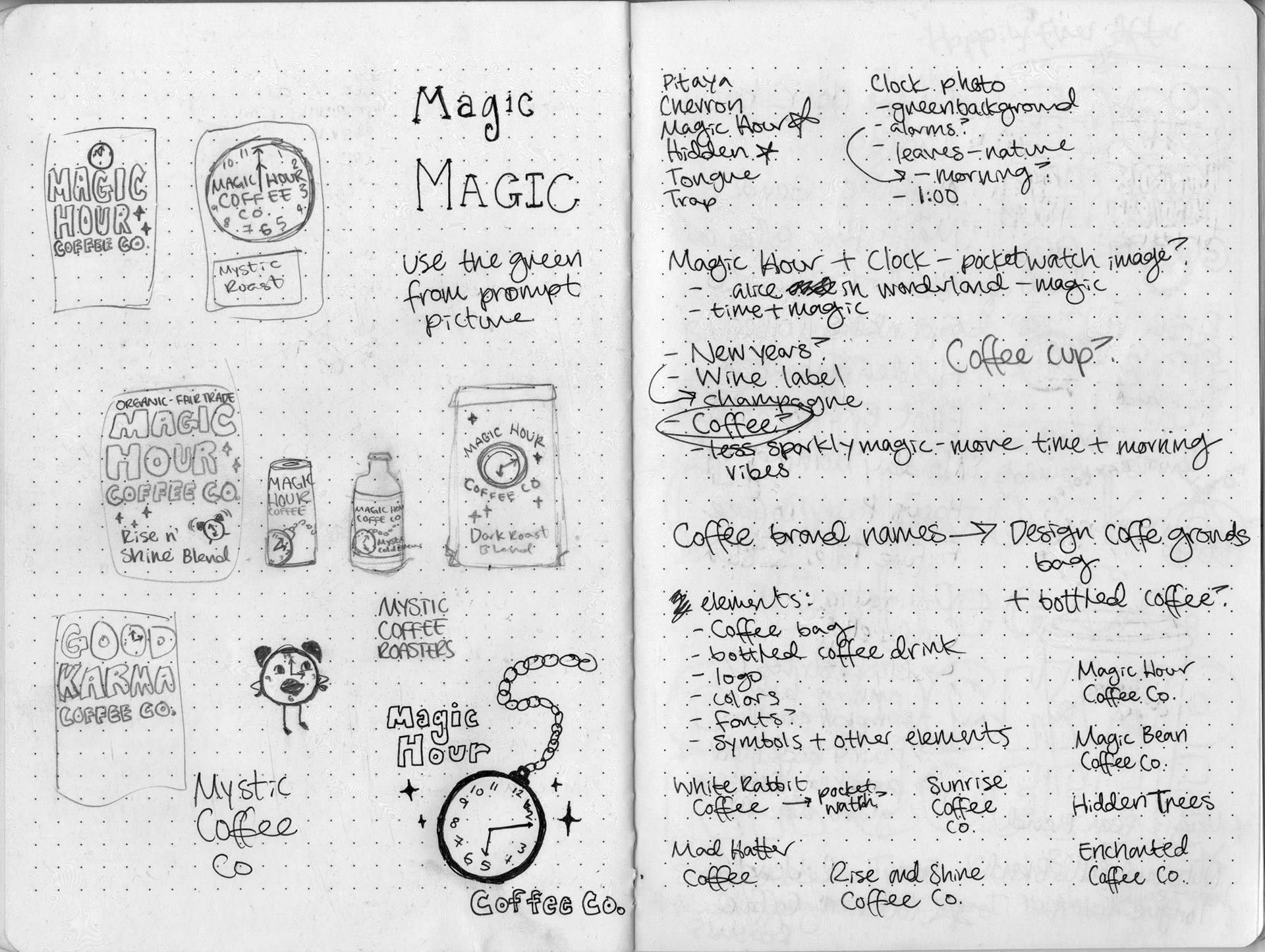 The word I chose was "magic hour", however I explored several words in my sketches below.